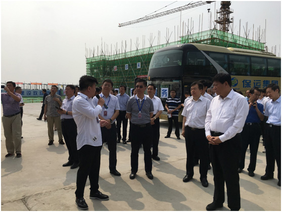 科技成就事業(yè),實干引領(lǐng)未來。在中國共產(chǎn)黨建黨97周年之際,7月1日,河北省委常委、常務(wù)副省長袁桐利帶隊河北省重點項目建設(shè)觀摩組,在保定市委副書記、市政府市長郭建英,保定市委常委、常務(wù)副市長李俊嶺等領(lǐng)導陪同下,重點圍繞華訊方舟集團中國天谷•河北太赫茲國際科技產(chǎn)業(yè)基地項目建設(shè)的新進展、新成效、新亮點進行現(xiàn)場觀摩調(diào)度。保定市徐水區(qū)委書記蘇樹鋒、華訊方舟集團高級副總裁丁慶、集團高級副總裁孫宏鶴、集團副總裁兼河北華訊天谷總經(jīng)理彭輝熱情接待觀摩組一行。